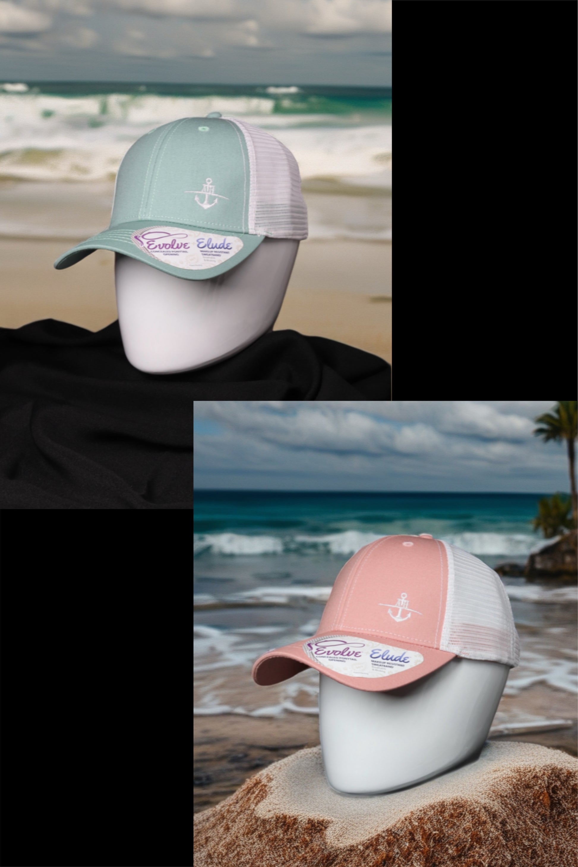 Women snapback structured concealed ponytail cap with embroidered logo.
